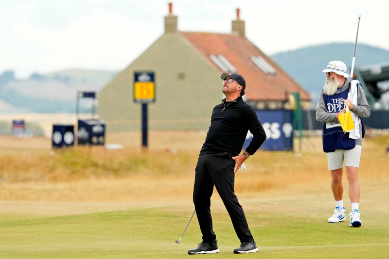 Mickelson sau cú đánh không đạt yêu cầu ở vòng 2 The Open 2022. Ảnh: The Open