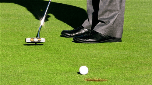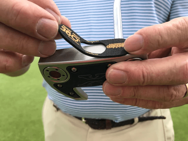 Bóc lớp keo dính ra khỏi điểm ngọt. Sau đó căn chỉnh nó sao cho mặt mở khớp với điểm ngọt của gậy putter của bạn. Nếu bạn nhận thấy mình đang đánh vào mũi gậy putter, rất có thể bạn đã thực hiện một cú đánh từ ngoài vào trong. Nếu bạn đánh gót chân, rất có thể bạn đã bị đánh từ trong ra ngoài. Nếu bạn chạm tới đỉnh của điểm ngọt, cú putt của bạn sẽ đi xuống. Nếu bạn chạm đáy, gậy putter của bạn sẽ đi lên. Sau khi nhận thức được lỗi của mình, bạn có thể tìm cách sửa nó bằng cách sử dụng điểm tốt. Mỗi khi bạn thực hiện một cú đánh chính xác, bạn sẽ được thưởng bằng cách đánh vào giữa gậy putter, tạo một đường lăn chắc chắn trên quả bóng của bạn.