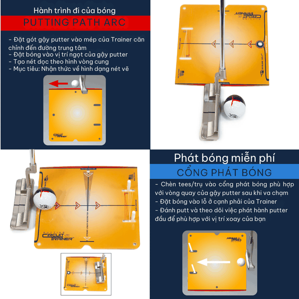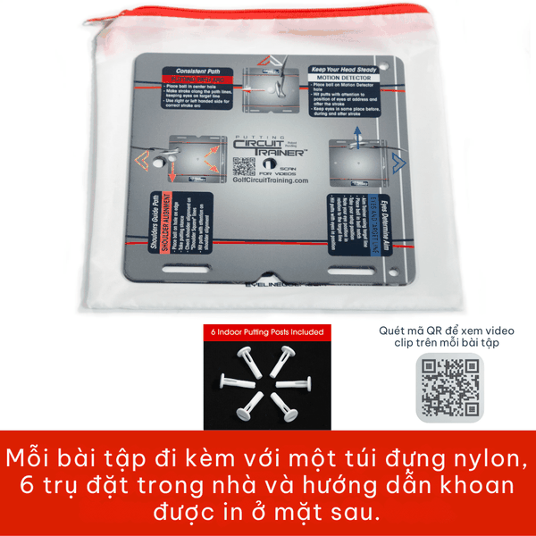 Cải thiện khả năng putt trong nhà hoặc ngoài trời của bạn với bộ dụng cụ tập putt màu vàng. Là một phần của bộ dụng cụ putt, nó mang lại nhiều hiệu quả. Tinh chỉnh cú putt của bạn bằng bốn bài tập cần thiết: Độ dài cú đánh, Cổng nhả, Vị trí bóng và Đường đi của người đánh bóng.