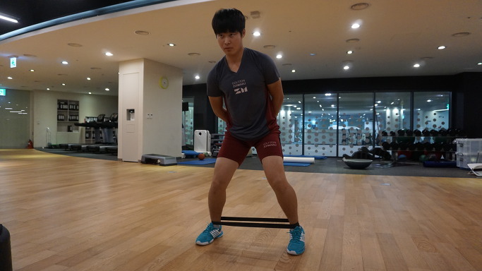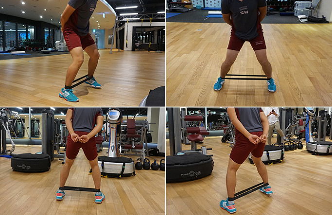 Nên đeo băng ở cả hai mắt cá chân để tăng phạm vi chuyển động. Thao tác rất đơn giản! Sau khi vào tư thế chuẩn bị, bạn bước đi nghiêng sang một bên, đây là bài tập tốt để tăng cường sức mạnh cho cơ mông nhỡ, hỗ trợ các cơ xoay xương chậu và rất hữu ích trong việc giữ thăng bằng.