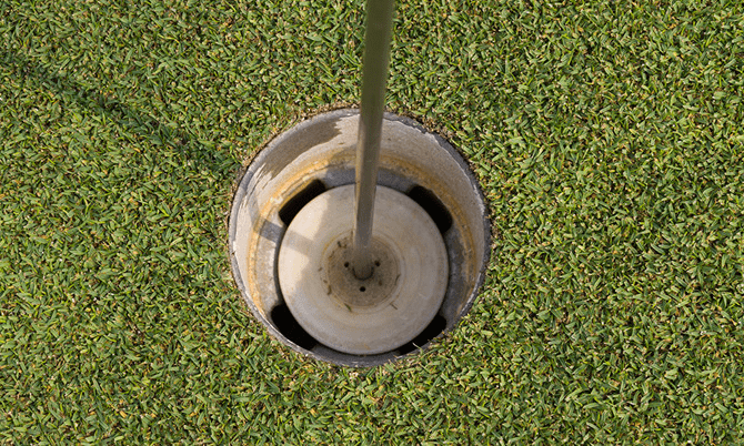 Bạn nên làm gì nếu được yêu cầu cầm cờ cho người bạn cùng chơi trên green nhưng khi bạn cố gắng kéo ra thì nó không ra ngoài và bóng đập vào cán cờ và dừng lại vài centimet từ cái lỗ?