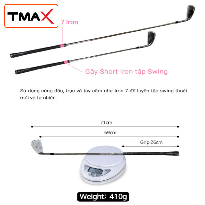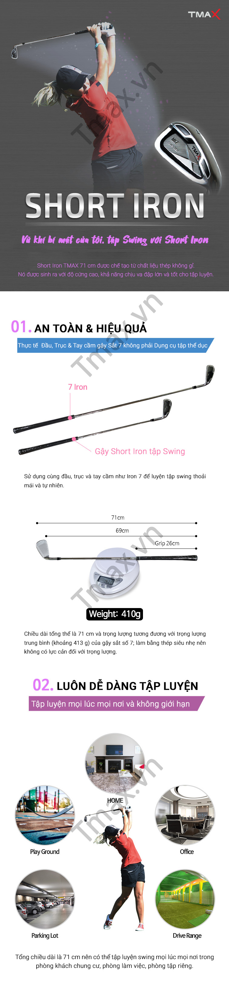 Với tổng chiều dài chỉ 71cm, Short Iron được thiết kế với cùng kích thước tay cầm và trọng lượng như gậy 7 Iron để bạn tập luyện và cải thiện Swing một cách tốt nhất.
