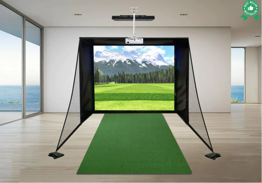 Màn hình SwingBay hoạt động tốt cùng với máy chiếu Uneekor HD Short Throw Golf Simulator, cung cấp màn hình có độ sáng phù hợp.