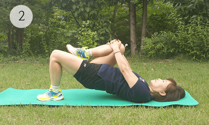 ② Nâng lên bằng cách tác động lực lên hông và gân kheo.