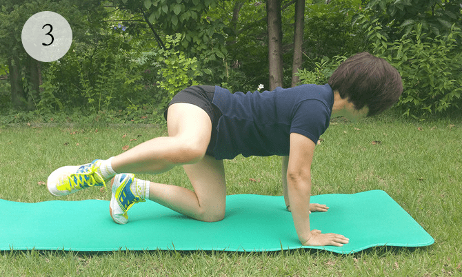 ③ Lặp lại động tác lên xuống trong khi vẫn giữ thăng bằng.