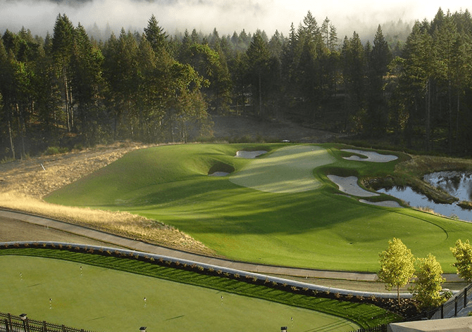 Trong trường hợp hố par 3 có các chướng ngại vật như bẫy nước hoặc bẫy cát xung quanh green. Bạn cần tránh chướng ngại vật và nhắm vào chốt, nhưng chốt phía trước là vị trí khó và khó khăn nhất nên bạn cần cẩn thận khi chọn gậy. Nếu nó ngắn, bạn sẽ dễ rơi vào bẫy cát hoặc bẫy nước, vì vậy, hiệu quả nhất là bạn nên cầm một cây gậy dài và nhắm vào tâm của green thay vì nhắm thẳng vào chốt.