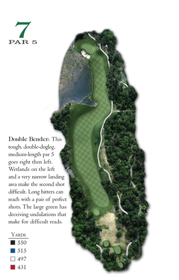 Các lỗ Dogleg, thường là par 4 hoặc par 5, không phải là hiếm trên sân. Khi thiết kế, các kiến trúc sư đã yêu thích kiểu lỗ này vì chúng tạo ra nhiều thử thách và cách chơi cho từng golfer. Đó là lý do tương tự mà nhiều người chơi thích gặp họ.