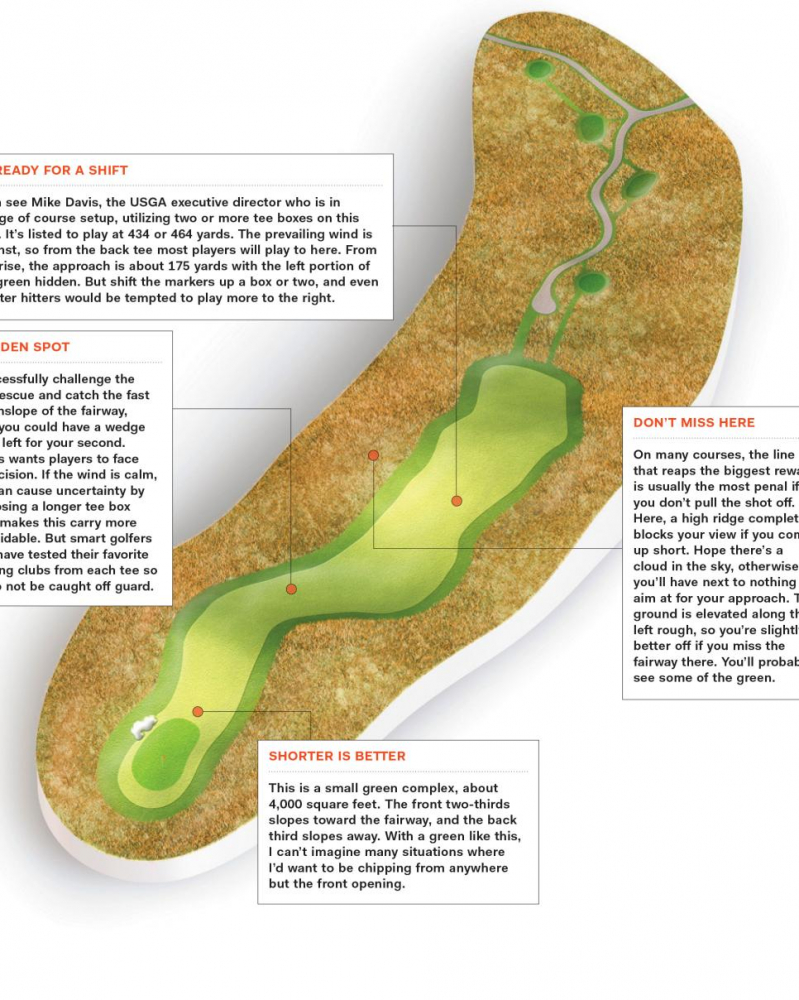 “Rất nhiều golfer mà tôi gặp có xu hướng đánh bóng sang phải và khi đứng trên hố dogleg rẽ trái, cố bẻ lái về hướng đó có ổn không? Câu trả lời là không, nhưng họ vẫn làm. Ở lỗ này, cách xử lý tốt nhất là chơi theo khả năng của họ. Trong nhiều trường hợp, có thể sử dụng một chiếc gậy ngắn hơn và ổn định để nhắm vào fairway thay vì đi sai hướng, “Sean Foley, 50 Huấn luyện viên hàng đầu thế giới của Golf Digest cho biết.