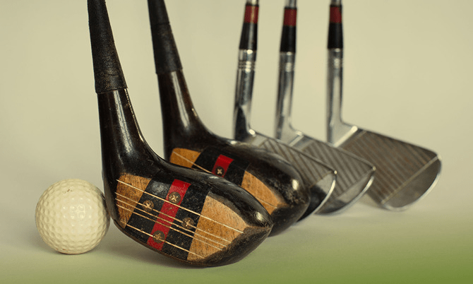 Gậy golf đã phát triển từ việc sử dụng gậy thông thường đến gỗ đào có lực đẩy tốt, từ tấm sắt ở mặt đầu sang gỗ kim loại và titan. Bóng golf cũng đã đạt được nhiều tiến bộ - chúng đã phát triển từ đá thành bóng gỗ, bóng da và bóng cao su, và giờ đây đã phát triển thành những quả bóng hai mảnh và ba mảnh hiện đại.