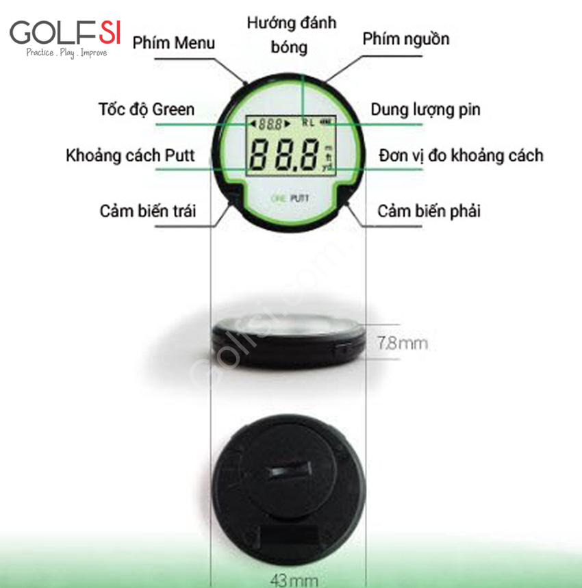 One Putt là một thiết bị cầm tay nhỏ gọn mà bất cứ Golfer nào cũng sẽ hứng thú. Nó thật sự có thể giúp bạn đo khoảng cách trên sân Golf, và bạn kiểm soát tốc độ Green để có những cú Putt chính xác nhất.