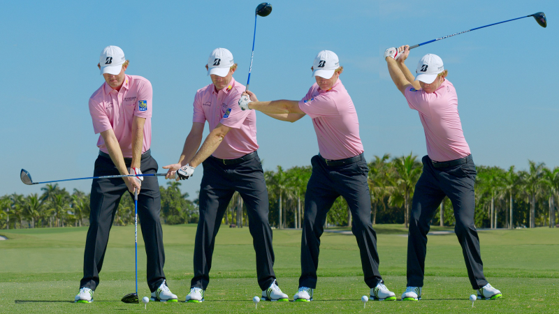 Nghiêng vai trái sao cho tay trái tạo thành đường thẳng với trục của gậy, lúc này bạn nên thả lỏng tay và nhìn thẳng về hướng bóng, đặt bóng ở vị trí thấp của quỹ đạo vung gậy của bạn.