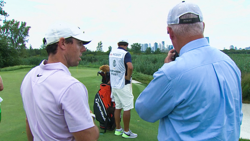 Sau quá trình trao đổi, trọng tài quyết định phạt McIlroy 2 gậy vì để bóng chạm tay vào cát. Tay golf 30 tuổi bình tĩnh chấp nhận quả phạt đền, không gây tranh cãi khiến trận đấu phải hoãn lại. Sau đó McIlroy đánh một cú đúp vào lỗ này và kết thúc vòng đấu với 70 (-1) gậy, cách đội đầu bảng năm gậy. Dustin Johnson.