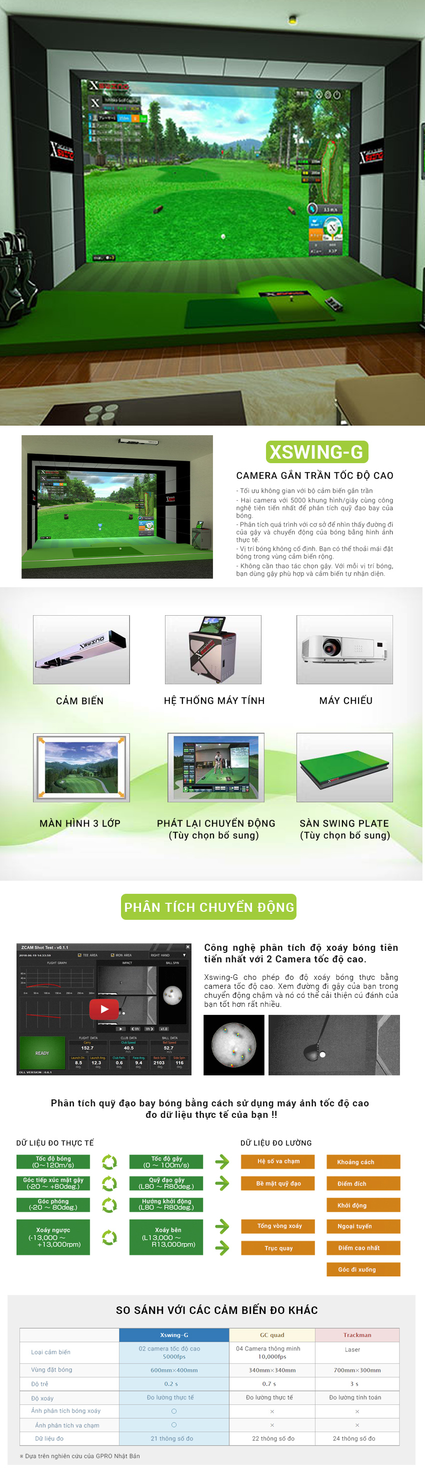 XSwing G - Kết nối đam mê. Kiến tạo phòng Golf 3D sang trọng và đẳng cấp cùng X-Swing G với hệ camera tốc độ cao. Luyện tập, chơi sân...tất cả đều hoàn hảo. Lắp đặt cho phòng kinh doanh, sân tập luyện hay thậm chí là ngay tại nhà để thỏa mãn niềm đam mê Golf bất cứ lúc nào bạn muốn.