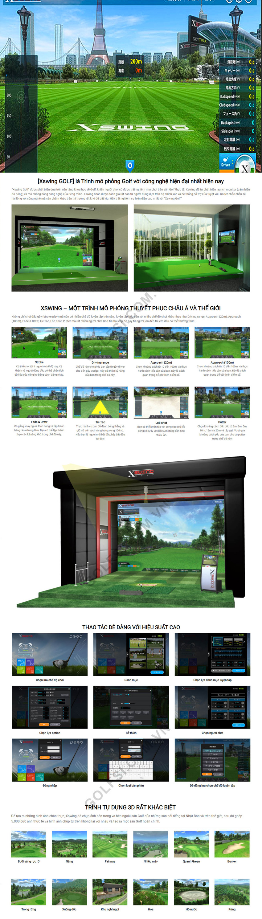 Chính xác hơn - chân thực hơn. Phần mềm Xswing Golf được phát triển trên nền tảng công nghệ khoa học về Golf, tái hiện chi tiết từng góc nhỏ trên sân thực tế. Không chỉ là chơi golf giải trí, Xswing G thật sự sẽ giúp bạn cải thiện nhanh chóng và hiệu quả toàn bộ kỹ năng chơi Golf.
